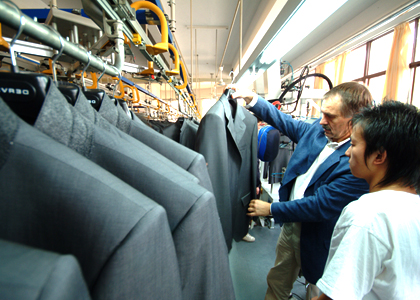 公司從德國、美國引進目前專業(yè)前端的生產(chǎn)設備及管理軟件,擁有2條男裝智能化生產(chǎn)流水線,年產(chǎn)男裝50萬套。more >